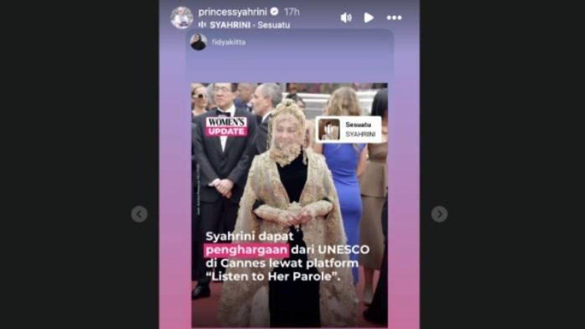 Prestasi terhormat dari UNESCO tersebut diserahkan secara langsung kepada Syahrini selama upacara formal yang berlangsung di Carlton Hotel Cannes pada tanggal 14 Mei 2025 kemarin.